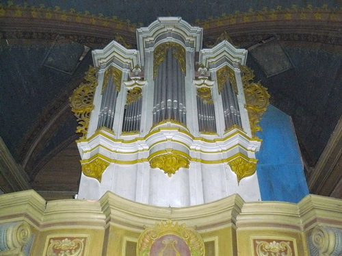 Organy nieznanego budowniczego (prawdopodobnie Tadeusza Salwierza) z II połowy XX w. Być może wykorzystano w nich wcześniejsze elementy. Obecnie są destruktem; brak wszystkich piszczałek poza prospektowymi. Prospekt z XVIII w. Widoczne ślady powiększania szafy organowej. Stół gry wbudowany z lewej strony szafy.