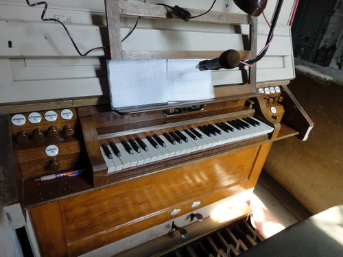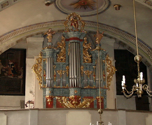 Traktura mechaniczna, jeden manuał (C-f3) i pedał (C-d1), wiatrownice stożkowe. Stół gry wbudowany w bok szafy organowej.