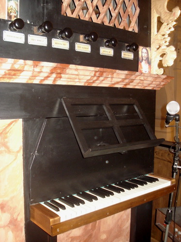*) – głos ustawiony na dodatkowej wiatrownicy (z tyłu szafy organowej).