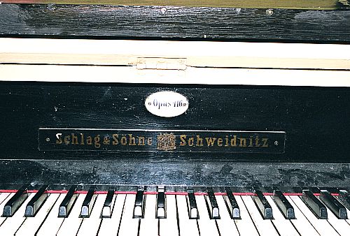Instrument firmy Schlag und Söhne opus 416. Instrument sprawny, jedynie w sekcji pedału nie grają niektóre piszczałki. Widać, że pedał jest mało używany, gdyż zalega na nim wiele brudu i kurzu. Kolejność głosów i pisownia nazw oryginalne.